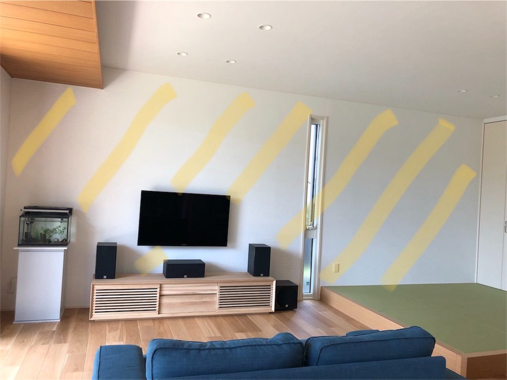 わが家はテレビ裏から和室にかけて広大な塗り壁を設置。